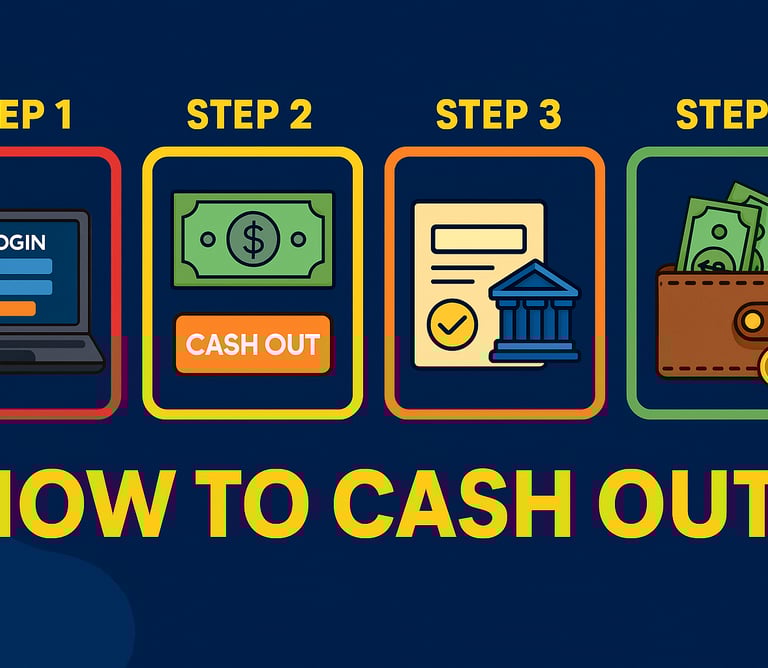 Click on the CASH OUT or WITHDRAW button, typically found in your account menu. This section displays your available balance and withdrawal options.